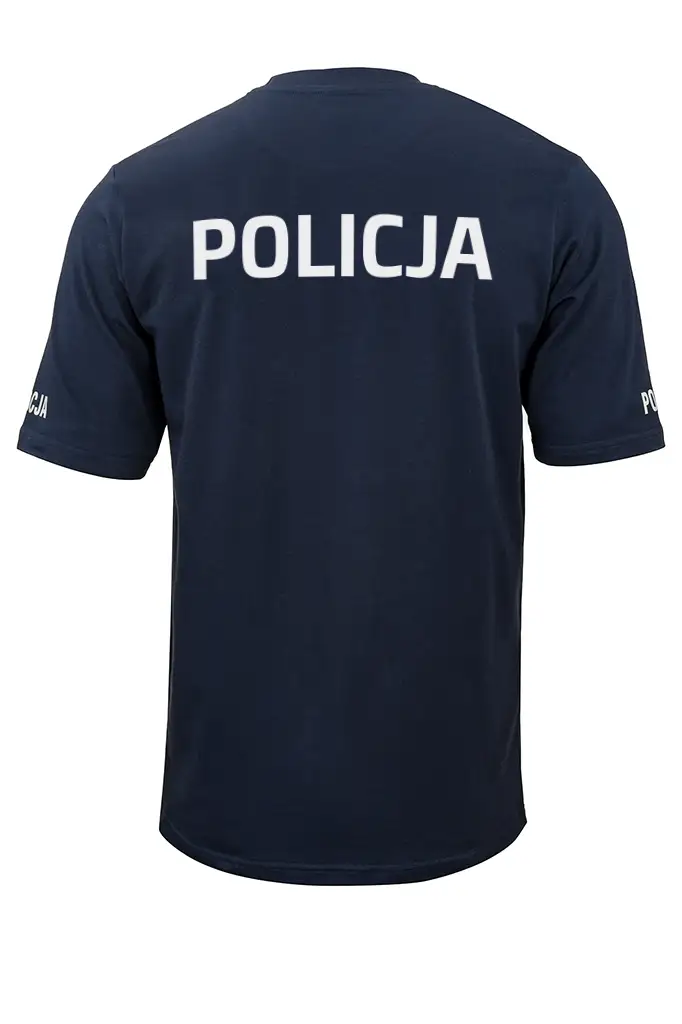 Koszulka została zaprojektowana jako element odzieży przeznaczonej dla służb mundurowych. Napis „POLICJA” umieszczony na piersi oraz rękawach wykonano metodą termo transferu, co zapewnia trwałość nadruku i jego czytelność podczas użytkowania.